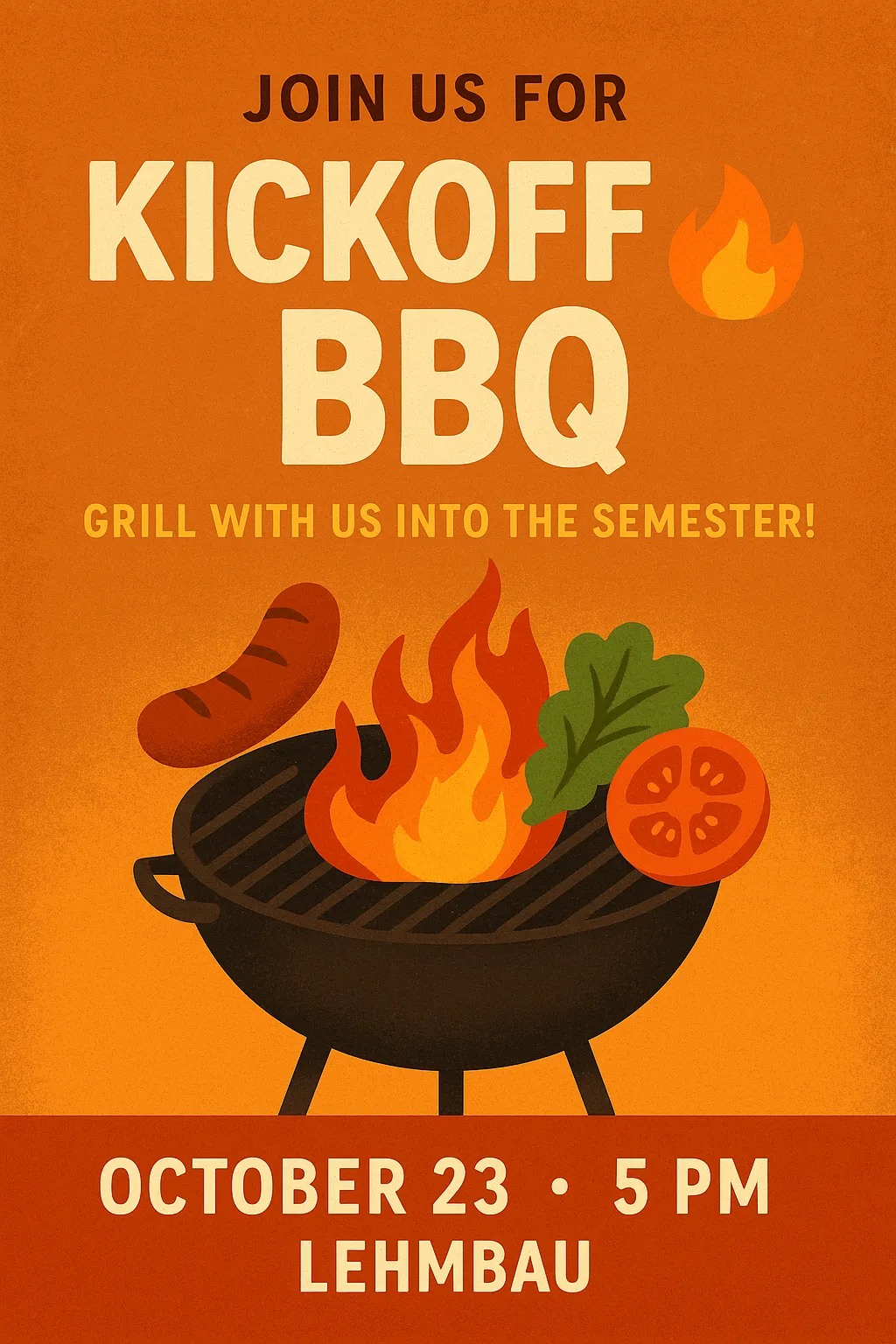 Let’s start the new semester together with delicious food, cold drinks, and great vibes! 🌭🥗🥤 Whether you’re new to the university or already know your way around – come by, meet new people, and enjoy a relaxed evening by the grill.